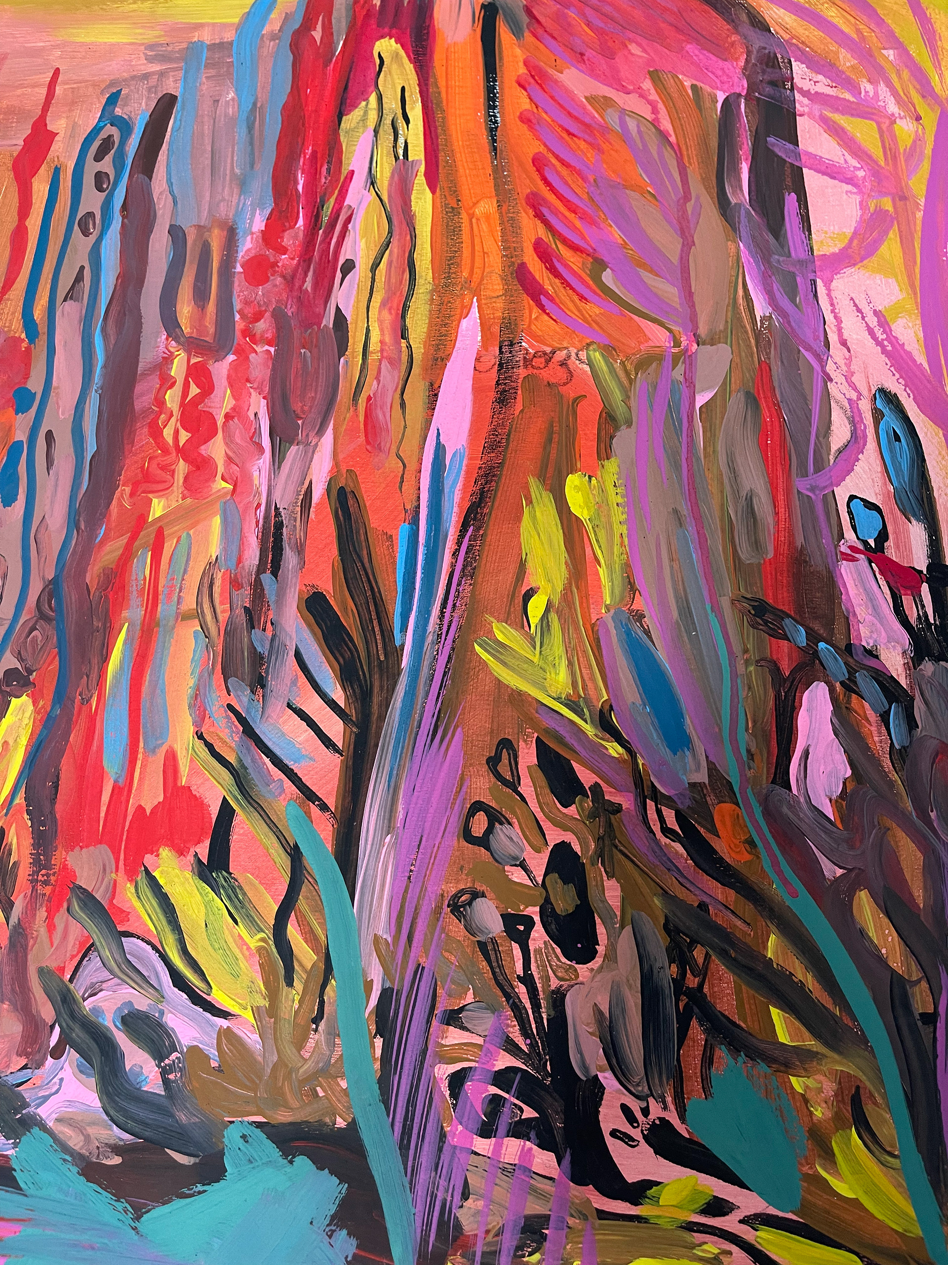 “El jardín de mis vísceras” invita a habitar el arte desde el desborde, a caminar entre flores nacidas del barro y pasear los monstruos que nos habitan. Es una propuesta para perderse —si se quiere— en los pasillos húmedos de un cuerpo que ha mutado muchas veces, pero que aún resplandece. Aquí, habitar el dolor también es una forma de florecer.